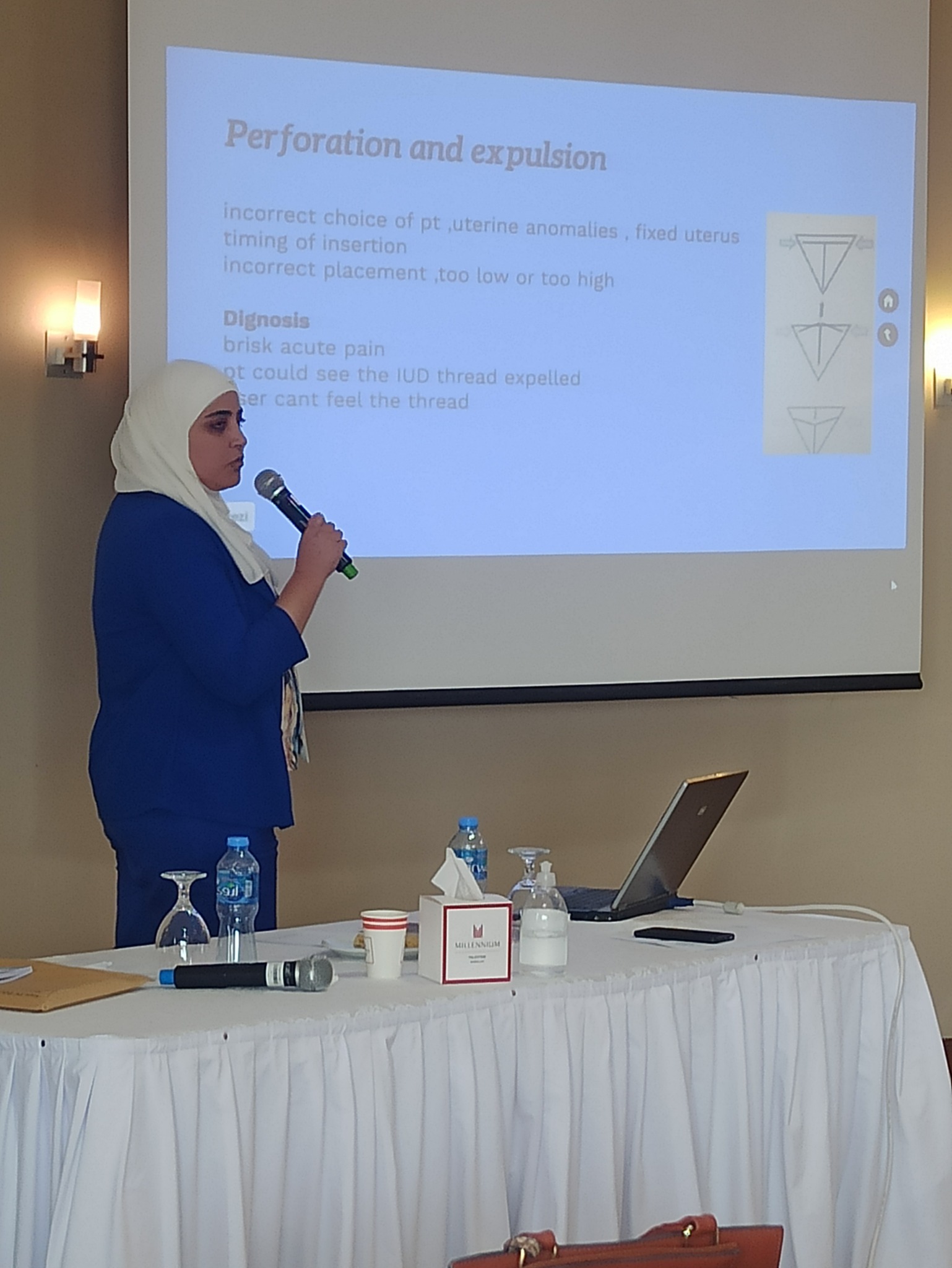 حيث قامت الطبيبة الاء حامد طبيبة عيادة رام الله بتنفيذ جزئية تدريب تركيب اللولب والغرسات